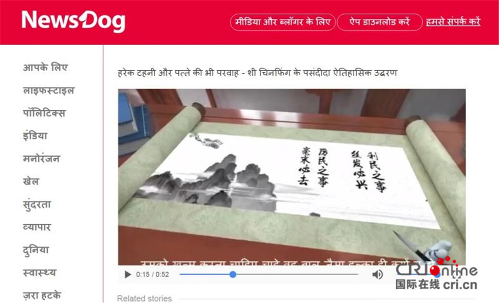 《平“语”近人》在印度社交网站上播出后不到4个小时,就获得了印度网友数万次的点赞。很多印度网友在中印两种不同的文化中感受到了相通之处,“我们彼此不同,又如此相似,这正是我们能够践行‘中印友谊长存’这句话的重要理由。”