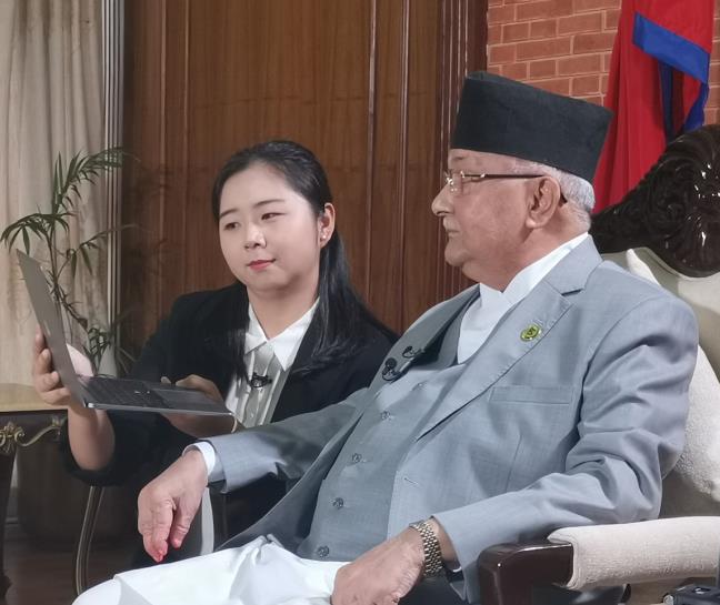 在习近平主席对尼泊尔进行国事访问前夕,尼泊尔总理奥利11日在总理府接受了中央广播电视总台记者的采访。当得知《平“语”近人——习近平喜欢的典故》尼泊尔语版系列视频节目将在尼国家电视台播出时,奥利总理饶有兴趣地通过电脑观看了节目样片。