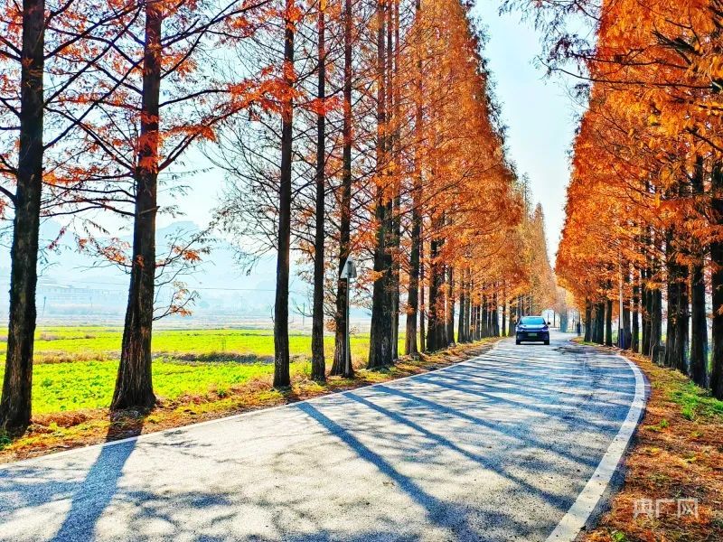 进入冬季,水杉迎来了一年最美的时候。近日,江西省新余市分宜县高大挺拔的水杉,红似火,美如油画,一辆辆汽车在斑斓的水杉公路上穿行,为冬日里的乡村增添了一抹迷人的色彩。