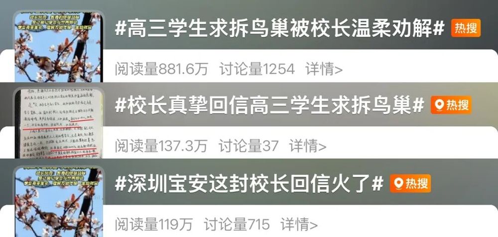 事件起因是,深圳宝安中学(集团)高中部一名高三学生备考期间受校园鸟鸣干扰,写信请求学校“拆除鸟巢”。