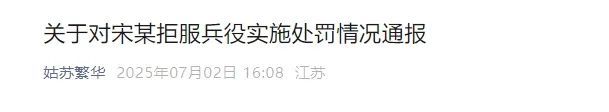 7月2日,江苏省苏州市姑苏区人武部通报一起拒服兵役的典型案例: