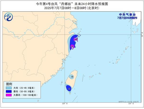 今天(7月7日)0点前后,今年第4号台风“丹娜丝”在台湾嘉义县沿海登陆,登陆时由强台风级减弱为台风级,中心附近最大风力有13级(40米/秒),中心最低气压为960百帕。