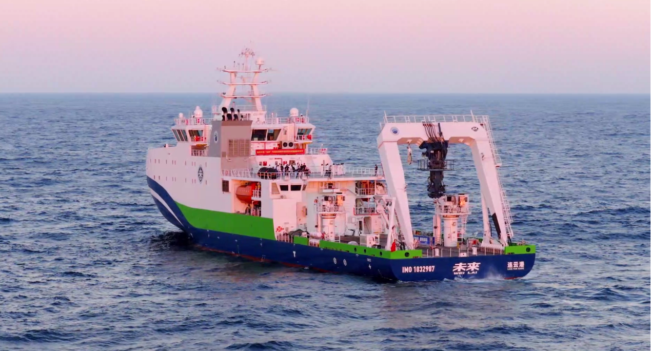 央广网连云港12月3日消息(记者栾永胜 见习记者邢振)日前,记者从深海技术科学太湖实验室连云港中心获悉,我国首艘深远海绿色智能技术试验船“未来”号,在结束为期16天的特装设备实海试验验收后,再驶深海,投入到了繁忙的试验任务中。这艘由深海技术科学太湖实验室及其连云港中心集智攻关打造的海上“变形金刚”,是今年7月才正式“入伍”的科技新星,在蔚蓝的深海中劈波斩浪,圆满完成了它的深远海“大考”。