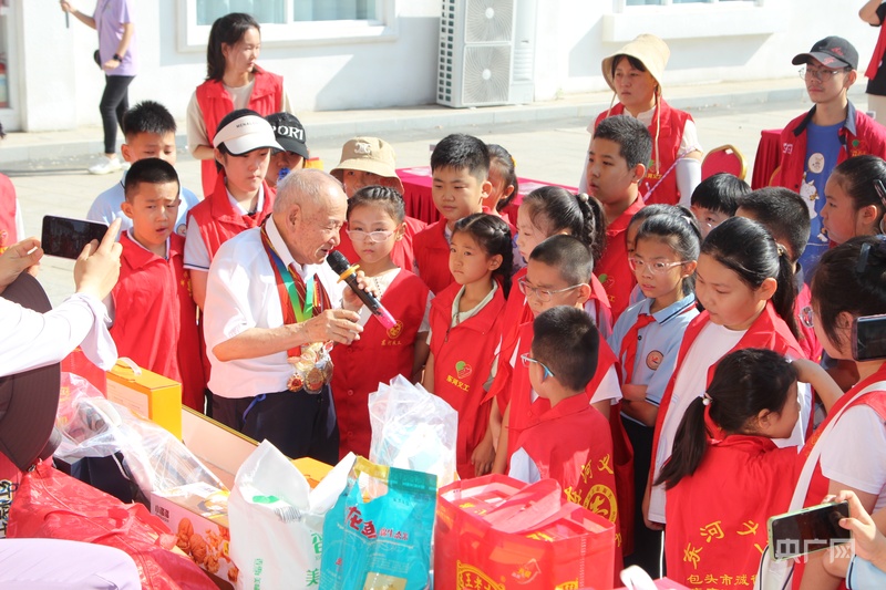 2025年7月2日,陈文学在包头市东河区与小义工进行慰问活动(央广网发 受访者供图)