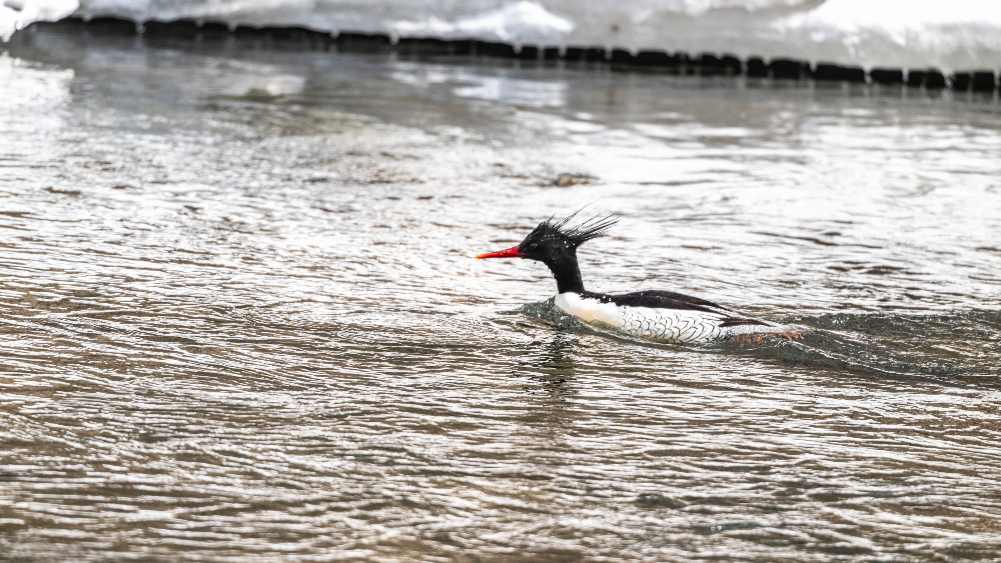 水中游弋的中华秋沙鸭(央广网发 朴龙国 摄)