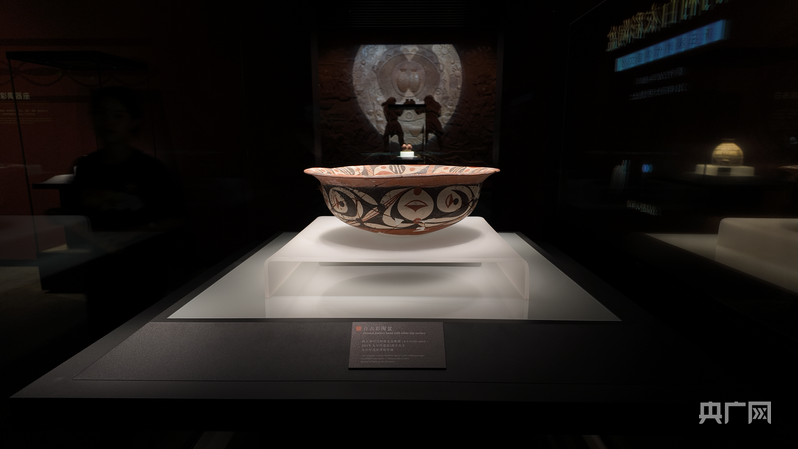大河村遗址博物馆新馆展出的“白衣彩陶盆”(央广网记者 夏莎 摄)