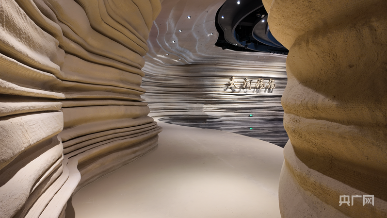 步入馆区,粗犷质朴的黄色夯土墙肌理毕现,精准复刻仰韶时期遗址基因;8米高空倾泻而下的晶莹水幕,在阳光折射下幻化为连接古今的时光之河;以黄河文化为主题的艺术景墙,通过现代材料的解构重组,让古老文明符号在当代空间中重新焕发生机。