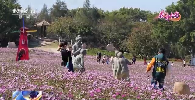 福建厦门:多彩波斯菊竞相开放 游人赏景花海如画