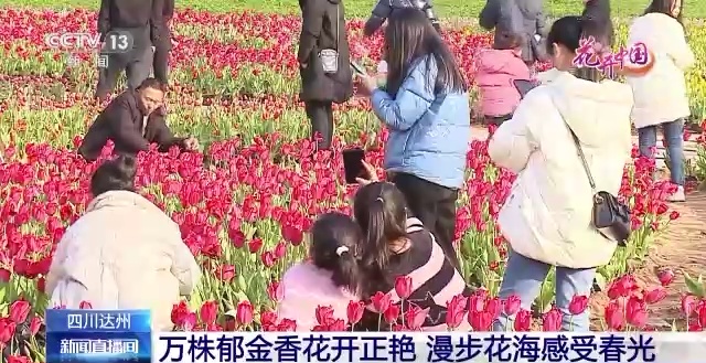 四川达州:万株郁金香花开正艳 漫步花海感受春光