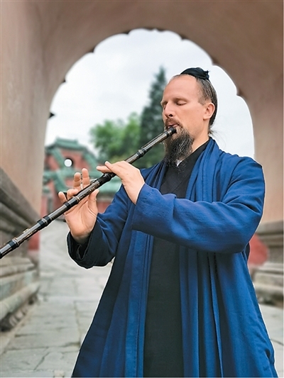在山上习武的日子里,他接触到了洞箫、葫芦丝、笛子、书法等,深感中华文化博大精深。他尤其被洞箫吸引,“中国乐器更注重表达内心的情感,而且洞箫和武术有相通之处,都需要控制好气息,所以学武术的底子对我吹好洞箫很有帮助。”