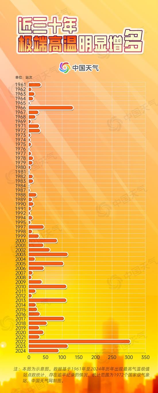不仅如此,全国范围内的高温极值也在逐年刷新。盘点国家气象站近60年大数据发现,我国大部地区高温极值呈现出明显增多的趋势,尤其是近三十年格外明显。