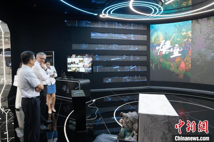 7月14日,外籍嘉宾在杭州未来科技城城市展馆了解游戏《黑神话:悟空》。 吴君毅 摄