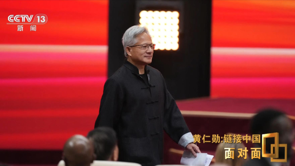 链博会开幕式上,黄仁勋没有穿他那件标志性的皮衣,而是身着唐装,并用中文开场演讲。