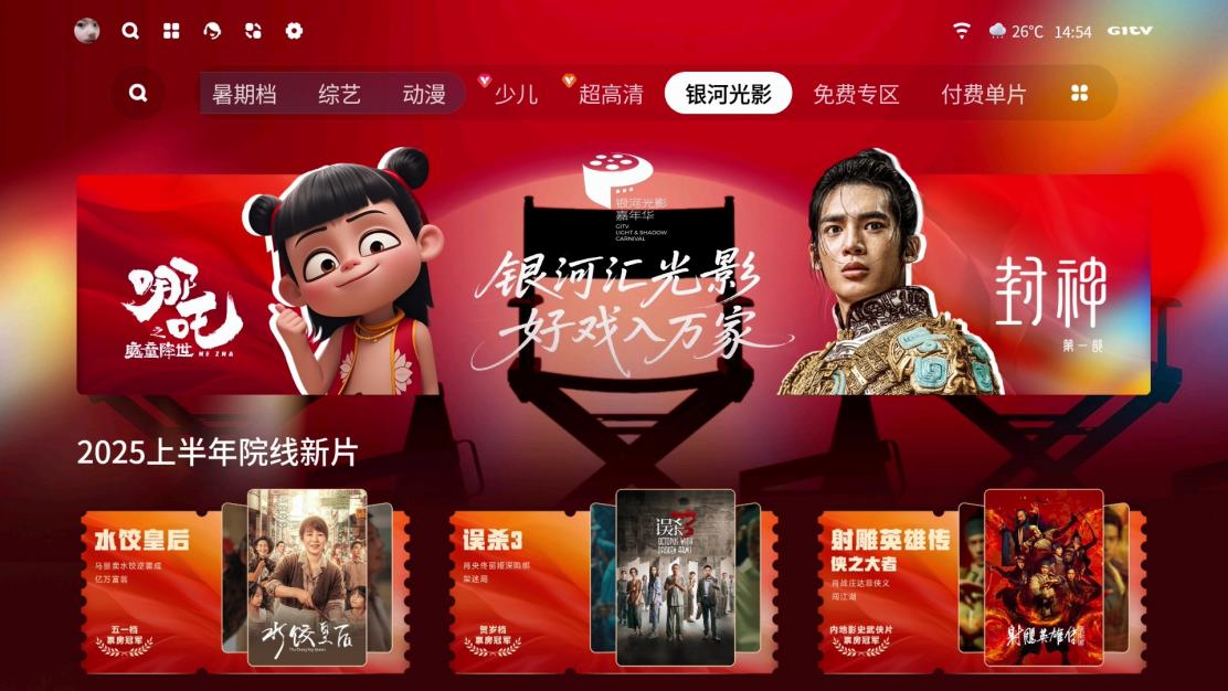 “银河光影嘉年华”凭借头部内容的时效性优势与经典IP的情怀价值,构建起覆盖全年龄层的暑期观影生态,让用户足不出户便能尽享影院级内容盛宴。今后,银河将以亿万家庭大屏为基石,持续探索“智能大屏+文化共创”的新型融合模式。