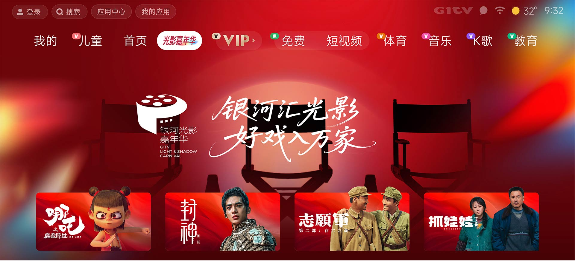 2025年7月25日,中央广播电视总台旗下银河互联网电视(GITV)正式推出大型专题活动——“银河光影嘉年华”。该活动同步登录小米电视、创维酷开电视及夏普电视等银河播控的智能大屏,以“参与感×归属感×影响力”三位一体的价值体系为内核,通过技术创新与内容整合,为全国亿万家庭打造“盛夏青春+IP唤醒”的电影IP沉浸式影展体验,开启家庭影娱消费的全新篇章。