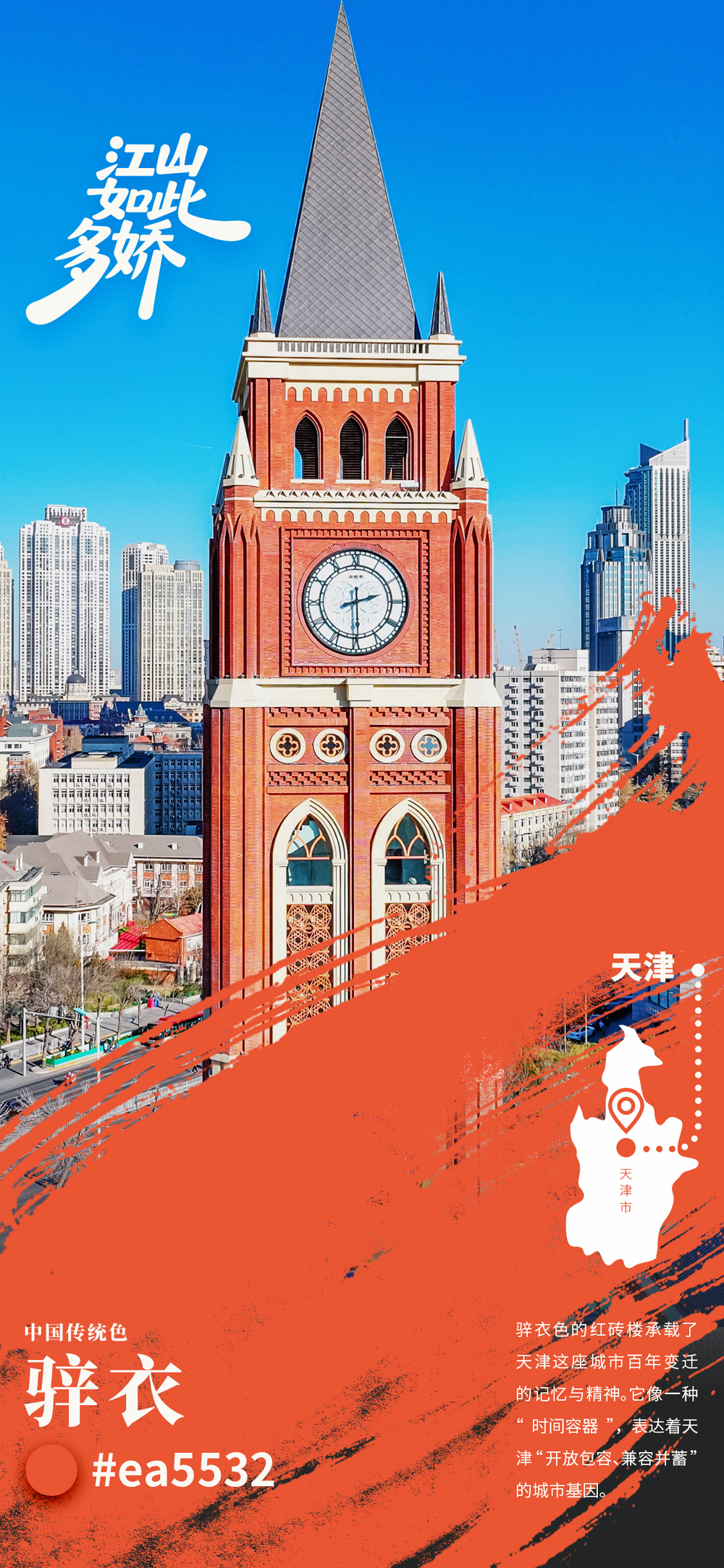69.6米的钟楼在五大道公园拔地而起,融合了英伦建筑的庄重线条中透着骍衣的温润,每一道砖缝里都藏着曾经租界的故事。其独特的建筑美学、深厚的历史内涵和创新的文化表达,成为天津一处新的城市地标,也为五大道这片承载百年记忆的街区注入了新的活力。