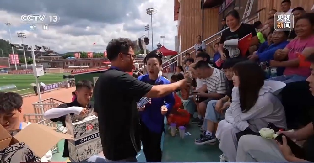 作为“村超”的气氛组长,熊竹青自然不会缺席“村超”复赛的第一天。即便这段时间过度劳累,喉咙也不太舒服,但她还是始终热情地向八方来客,赠送自家种植的西瓜。