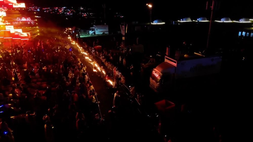 阿西里西草原上,数万支火把在夜色中连成一片跳动的星河。