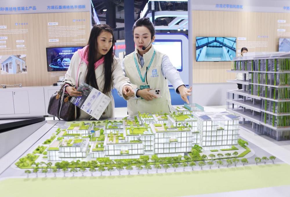 11月6日,参观者在住博会上了解绿色低碳好房子的展出内容。