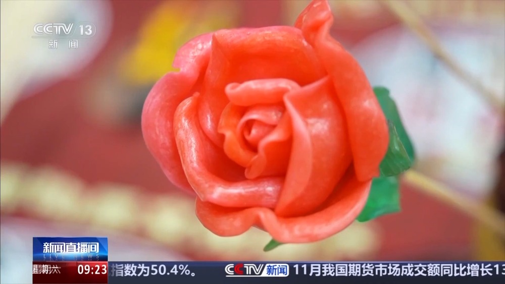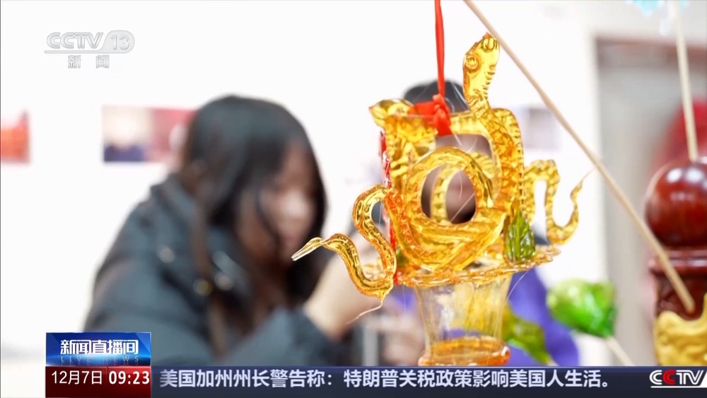 在辽宁沈阳和平区的一个非遗展示活动专区布置得格外喜庆,沈阳李氏糖人传承人李凤艳正在给大家演示制作糖人的过程。