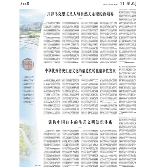 党的十八大以来,在习近平生态文明思想科学指引下,我国生态环境保护发生历史性、转折性、全局性变化。习近平生态文明思想以科学的理论范畴、严密的逻辑架构、深邃的历史视野丰富和发展了马克思主义人与自然关系理论,对中华优秀传统生态文化进行创造性转化、创新性发展,为正确认识人与自然关系提供科学指导,为建构中国自主的生态文明知识体系提供科学指引。本期学术版刊发3篇文章,从不同角度对习近平生态文明思想进行阐释。