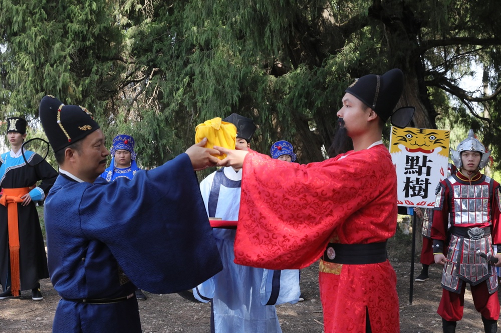 “走马点树,验数交印!”6月21日,翠云廊景区,《点树交印》沉浸式演出再次上演:身着明代官服的“离任县令”与“新任县令”,手持清单,认真清点每一棵古柏,完成“点树交印”。自2023年8月推出以来,该演出已上演300余场,场场吸引众多游客围观拍摄。