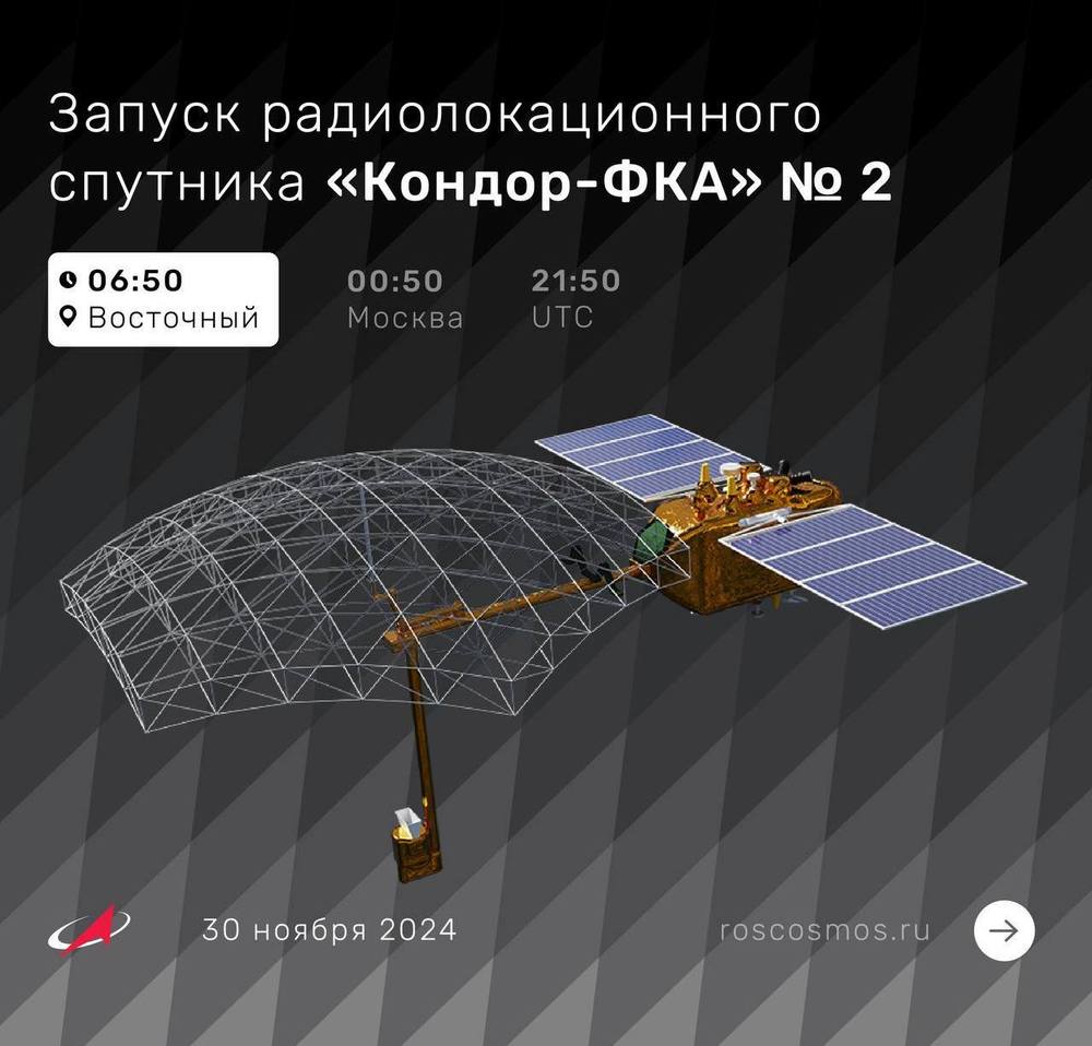莫斯科时间11月30日,俄罗斯国家航天集团公司从位于远东地区的东方发射场使用“联盟-2.1a”火箭发射了第二颗“秃鹰-FKA”系列雷达卫星。
