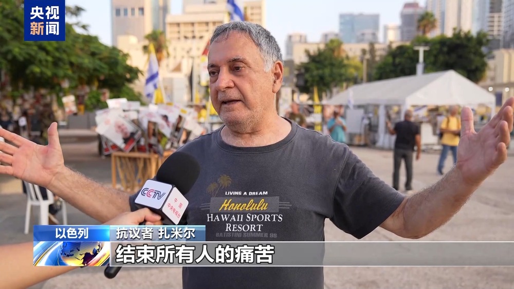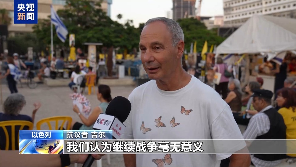 总台记者 梁慧:这里就是特拉维夫市中心的广场,在过去一年多时间里,差不多每个周末都有大量的以色列民众来到这里,呼吁政府停止战争并尽快地解救被扣押人员。